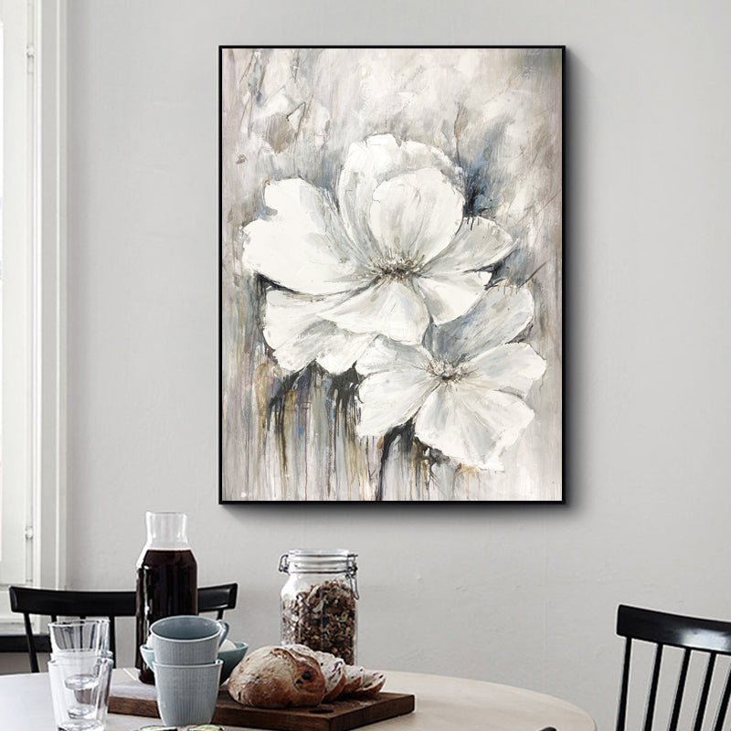 Textured White Flower Hand Painted Modern Abstract Oil Painting On Canvas Wall Art For Living Room,31inx47in,No Frame