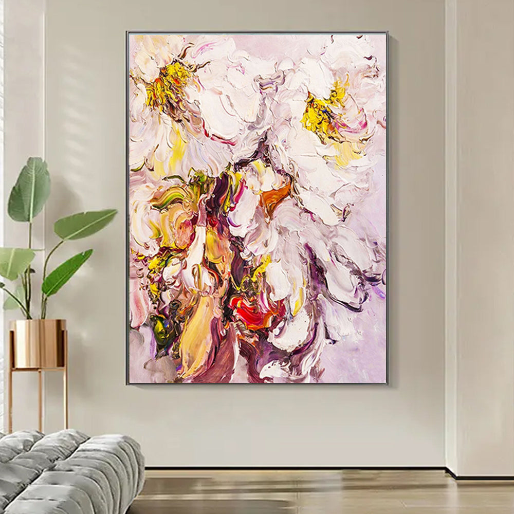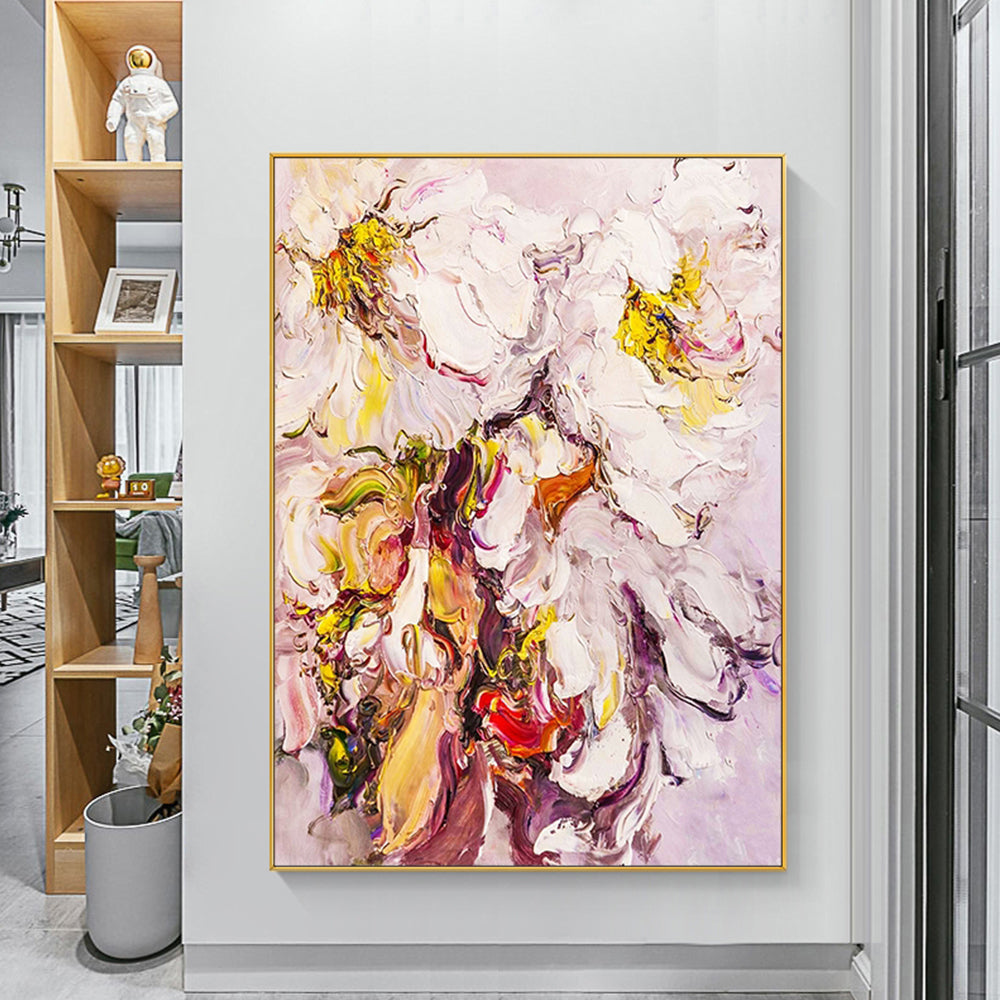 Unframe Wall Art Hand Painted Oil Painting On Canvas Abstract Flower Paintings,31inx47in,No Framed